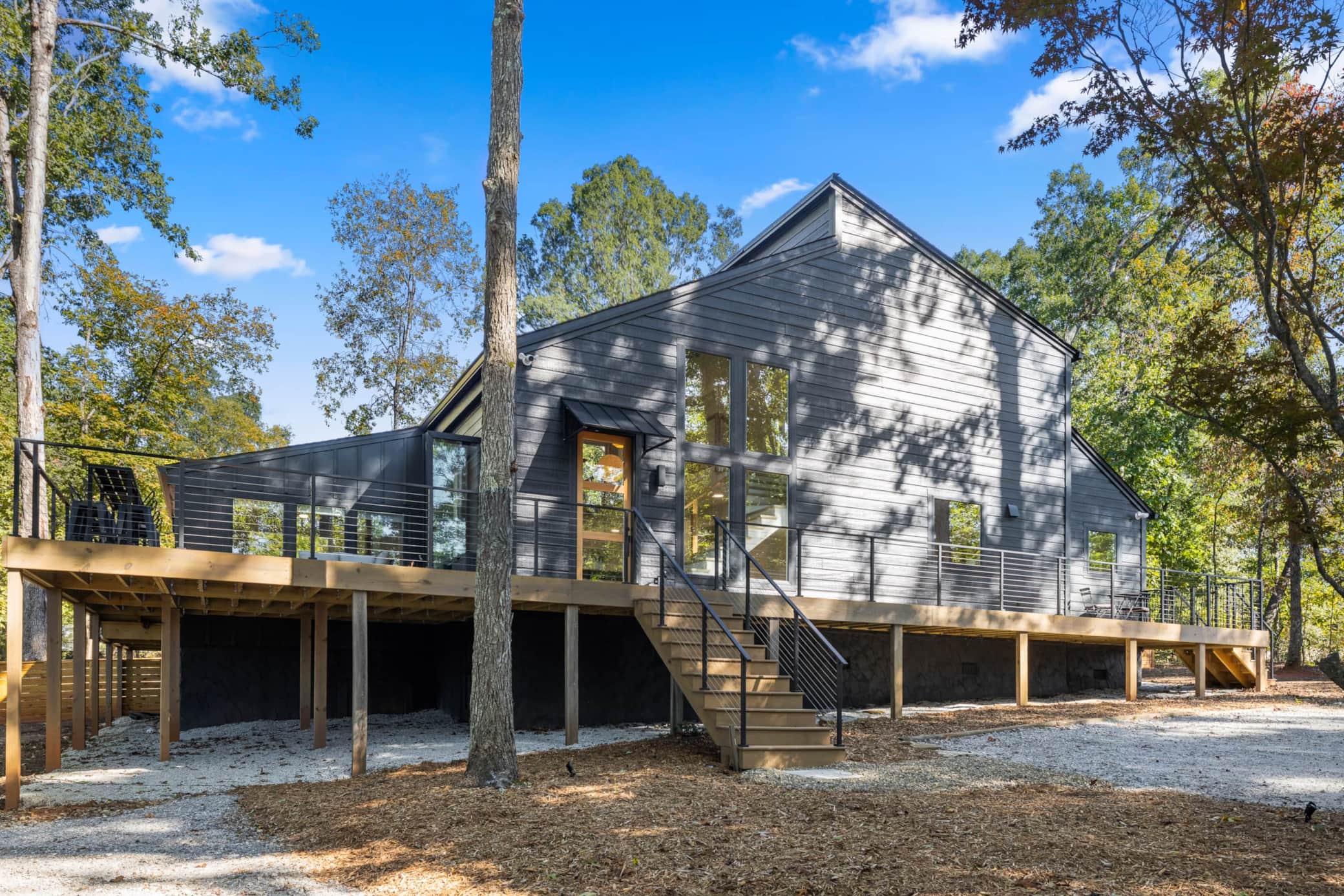 Located in Travelers Rest, South Carolina, this is a newly renovated from top to bottom luxury cabin nestled in the woods. The property is privately tucked away on a long driveway on several acres with views of the Blue Ridge mountains and trees all around.